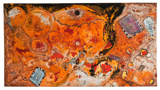 Pigmentfarben, Acryl, Jute auf Leinwand (200 x 160 cm)