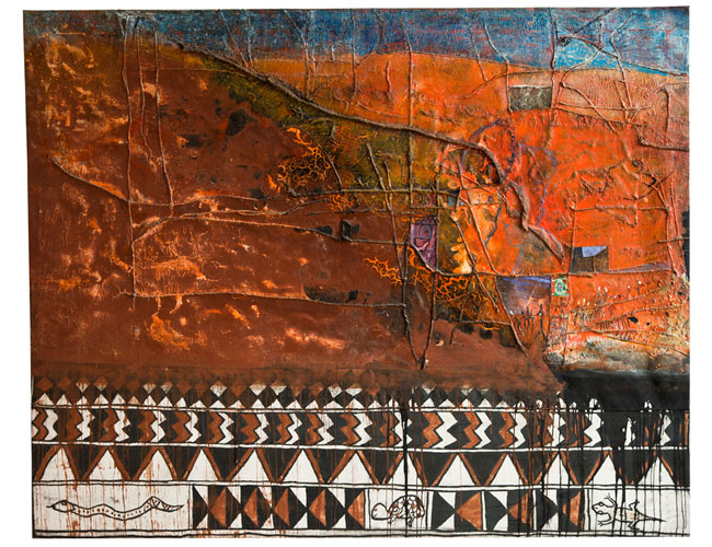 Pigmentfarben auf Baumrinde, Acryl auf Leinwand (200 x 164 cm)