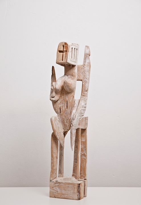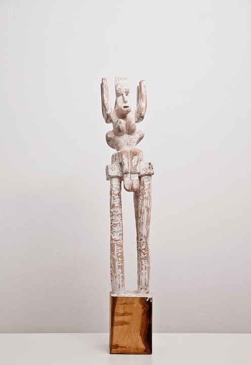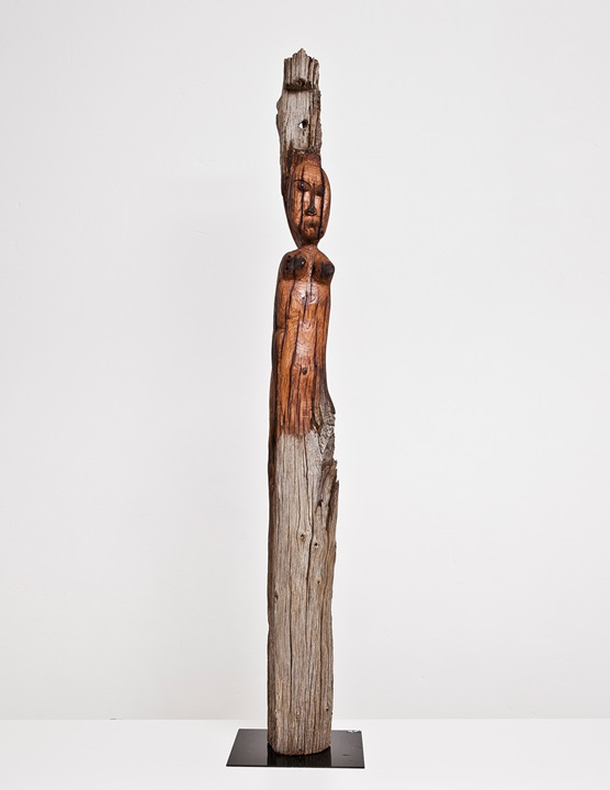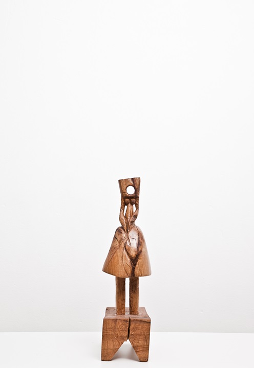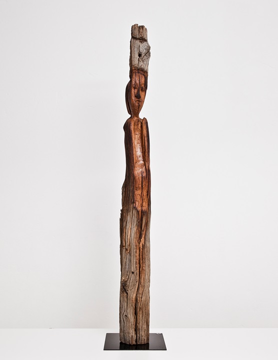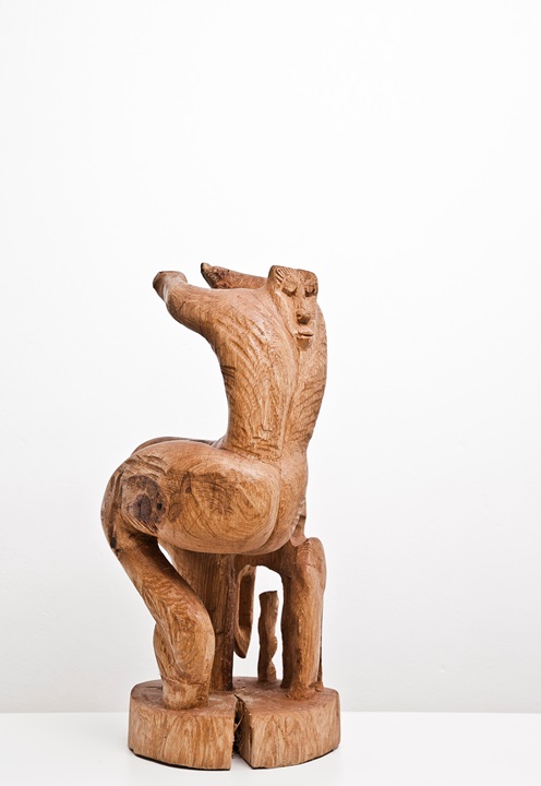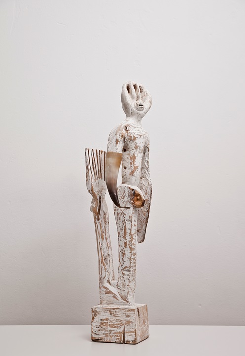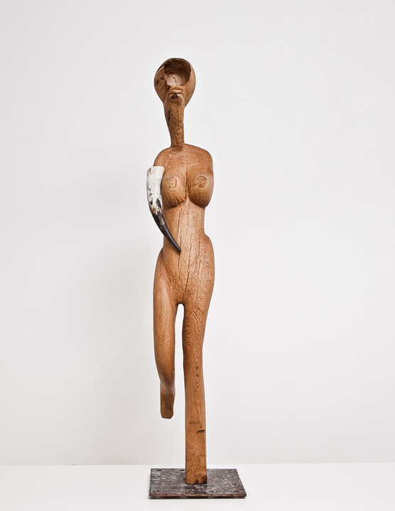 Eichenholz, Metallsockel, Kuhhorn (150 cm)